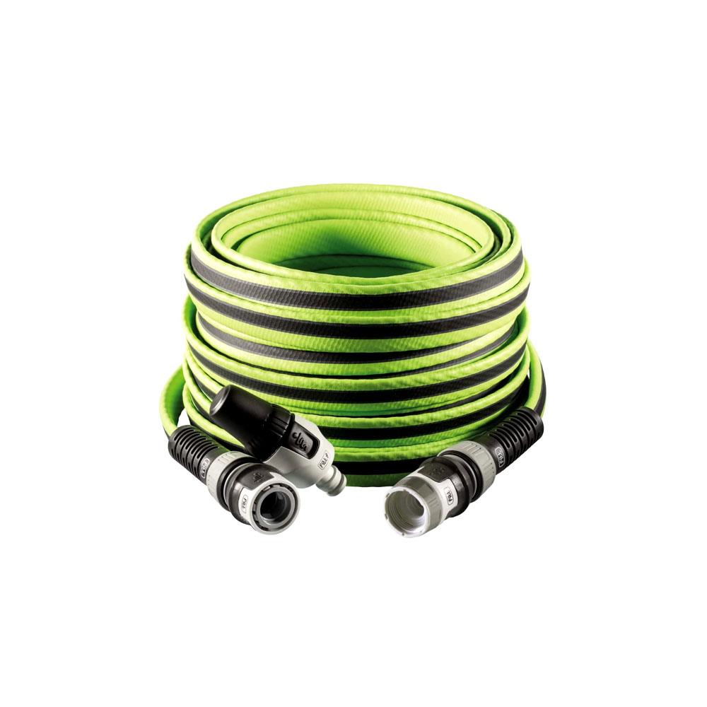 Tubo 3 strati Rinforzo tessile interno - Privo PVC Maneggevole e anti-torsione Alta resistenza all'abrasione e alle forature Dotazioni raccordi e lancia Piatto - Si allarga con passaggio acqua Diametro interno mm 12,5 ca Pressione esercizio bar min3 max 7 Pressione scoppio bar 20 Temperatura utilizzo -40^ + 80^