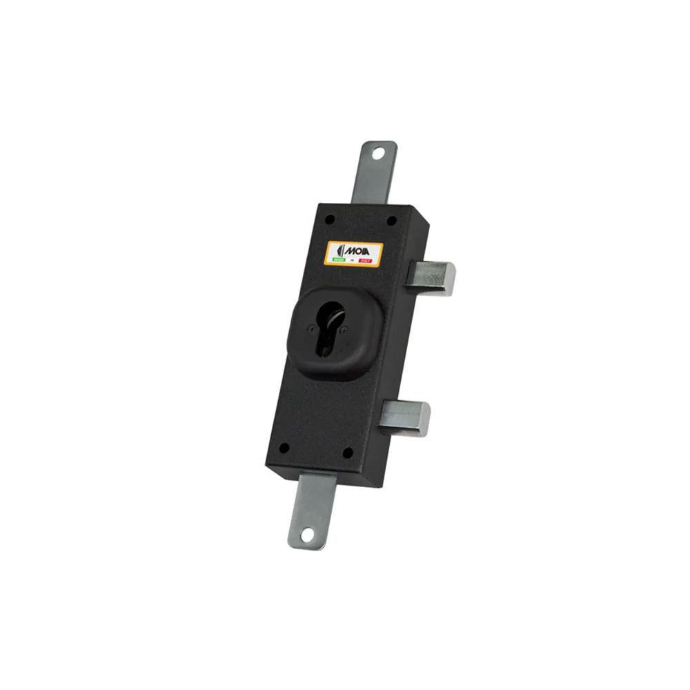 Ferroglietto verniciato nero - Applicare legno Apertura cilindro profilo europeo non incluso Chiusure verticali corsa mm 22 Catenacci laterali mm 20x14 corsa mm 22 Scatola mm 60x160 - Entrata mm 30 Dotazione mostrina interna tenuta cilindro Aste non incluse