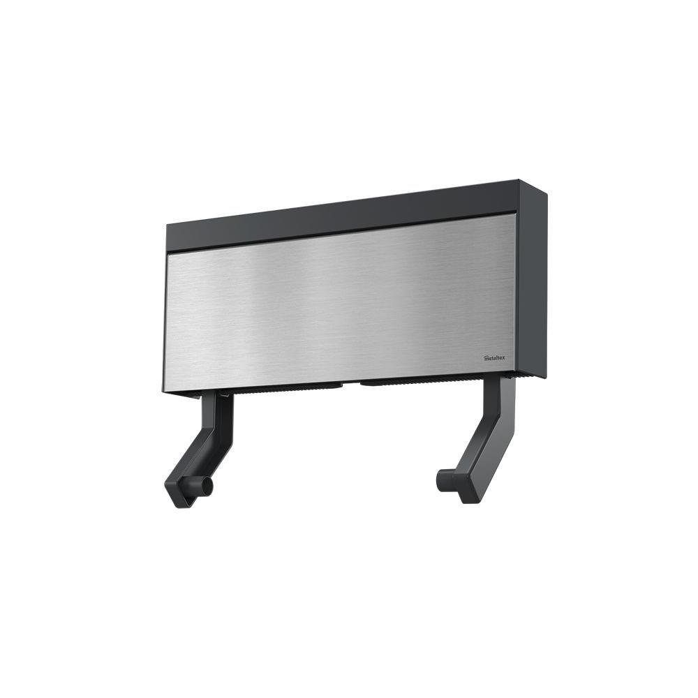Plastica - Coperchio frontale acciaio A parete - Superficie appoggio per spezie Portarotolo 3 posti: carta, alluminio e pellicola Utilizzo portarotolo o 6 ganci appendere inclusi Dimensioni cm 38x17 Rotolo carta non incluso
