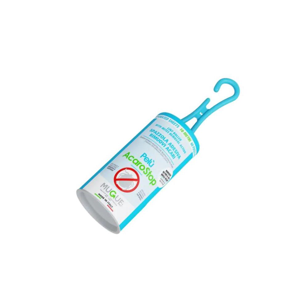 Supporto plastica - Carta adesiva siliconata Lunghezza nastro m 10 Funzionamento roll Profumazione anice e finocchio Rilascia estratti vegetali acarorepellenti Rimuove oltre 99% degli acari Toglie peli e affini da abiti
