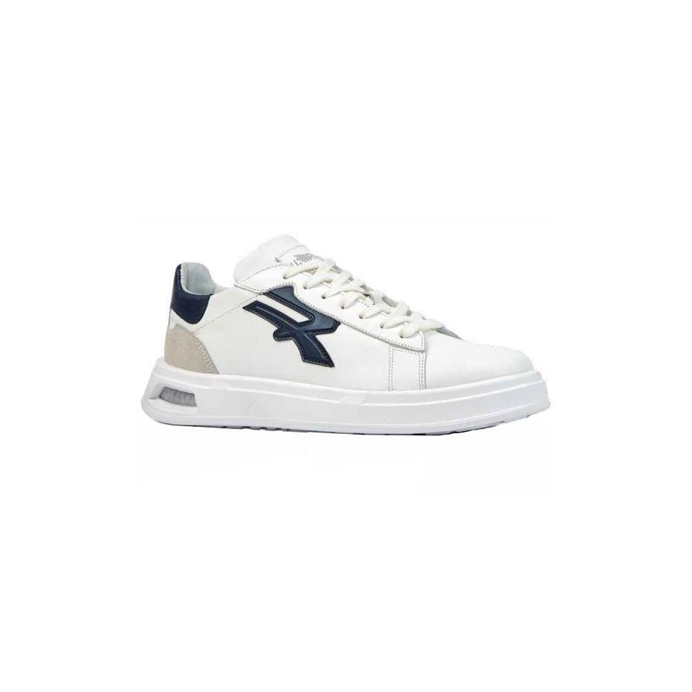 Tomaia pelle e suede Fodera interna pelle Linguetta pelle Suola PU compatto Puntale chiuso Coprisottopiede pelle Inserto defaticante Infinergy BASF Protezione classe OB SR - EN 20347:2022 Colore bianco inserti blu e beige