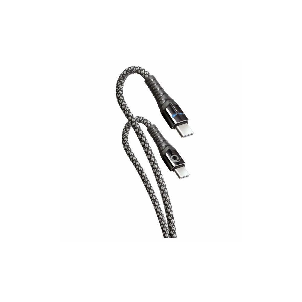 Cavo ricarica e trasferimento dati Entrata USB-C Uscita Type C Potenza trasmissione watt 60 Lunghezza cm 120 Rivestimento rinforzato Luce LED funzionamento Terminali alluminio Colore nero/grigio