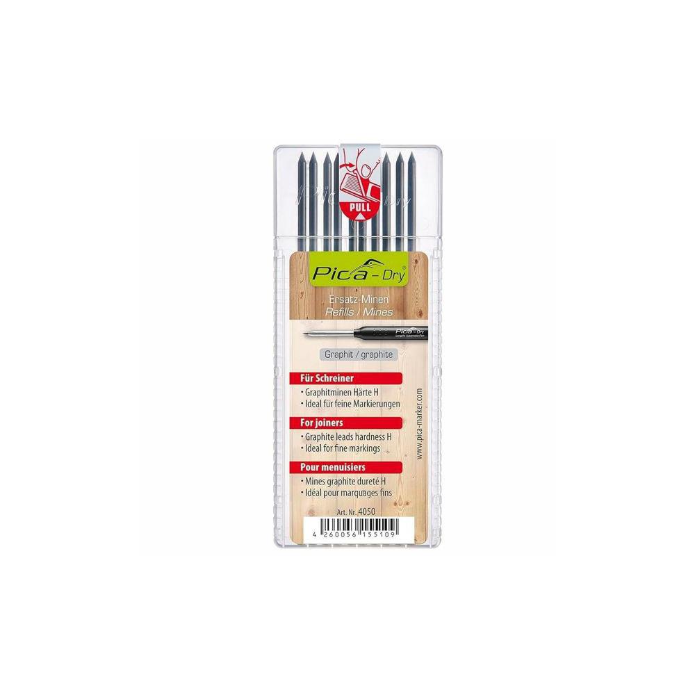 Ricambio per matite Dry Adatte per la maggior parte delle superfici Durezza speciale H per marcature fini Non adatto per superfici lisce Uso falegnameria Astuccio 10 mine grafite