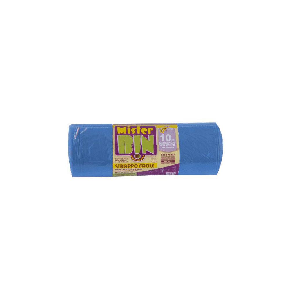 Materiale riciclato 100% - Resistenza media Fondotenuta liquidi - Saldatura a stella Lacci di chiusura - Confezione salvaspazio Dimensioni cm 70x110 peso g 30 my 20