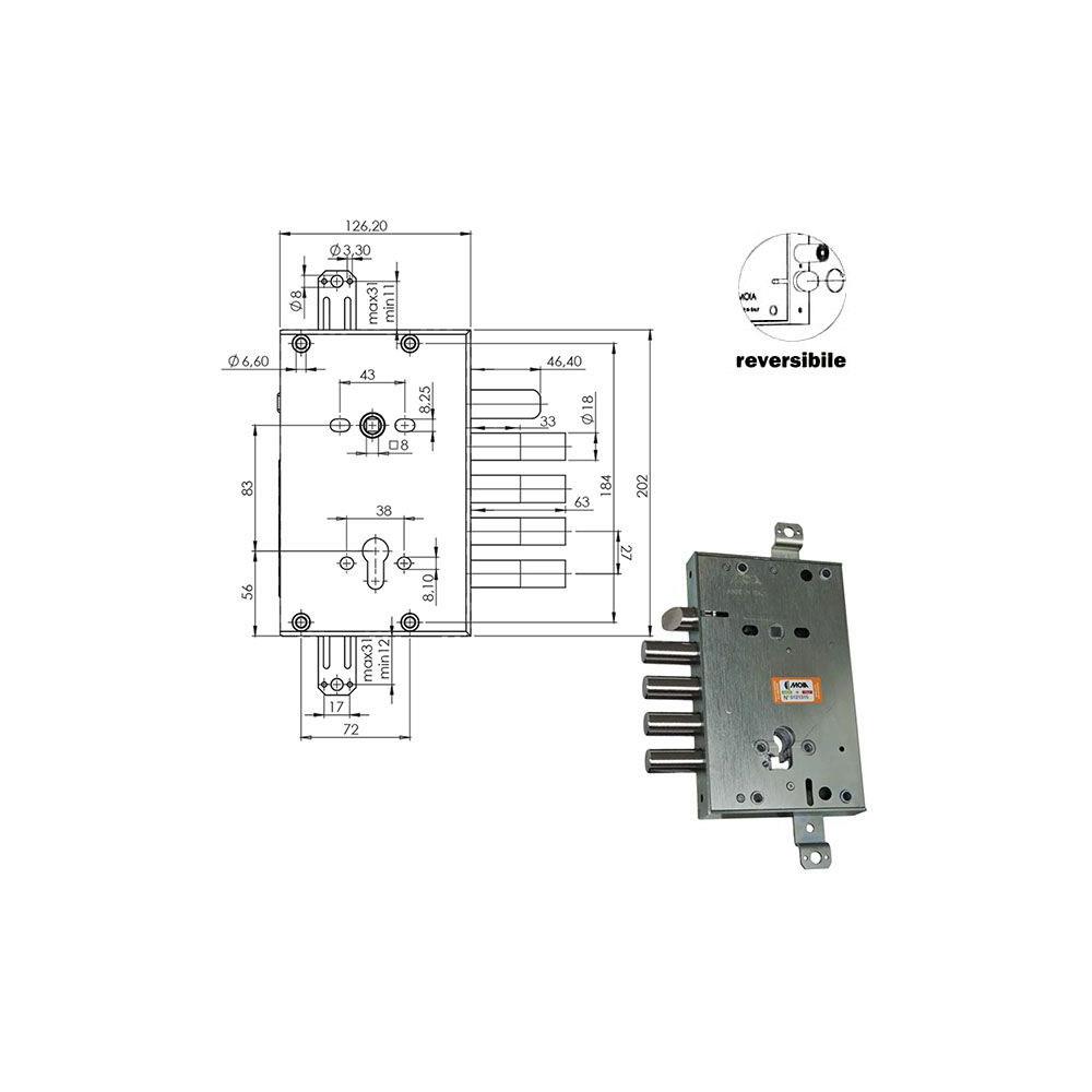 SERRATURA SIC.TRIPLICE CIL. E63 RCI664+33/270 MOIA