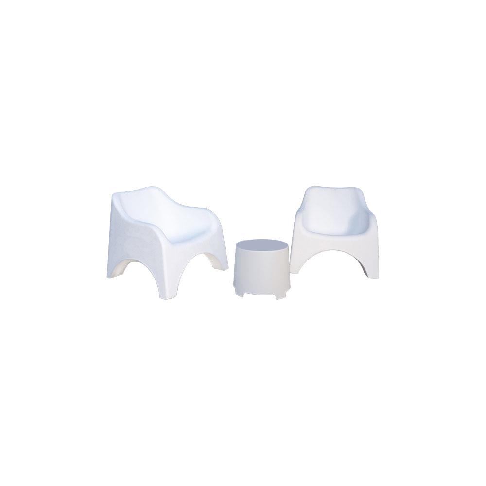 Resina Composizione: 2 poltrone cm 79x78 h 70 1 tavolino cm 40x35 h 38 Resiste agli agenti atmosferici/muffe/smog/polvere Non adatta ad utilizzo professionale