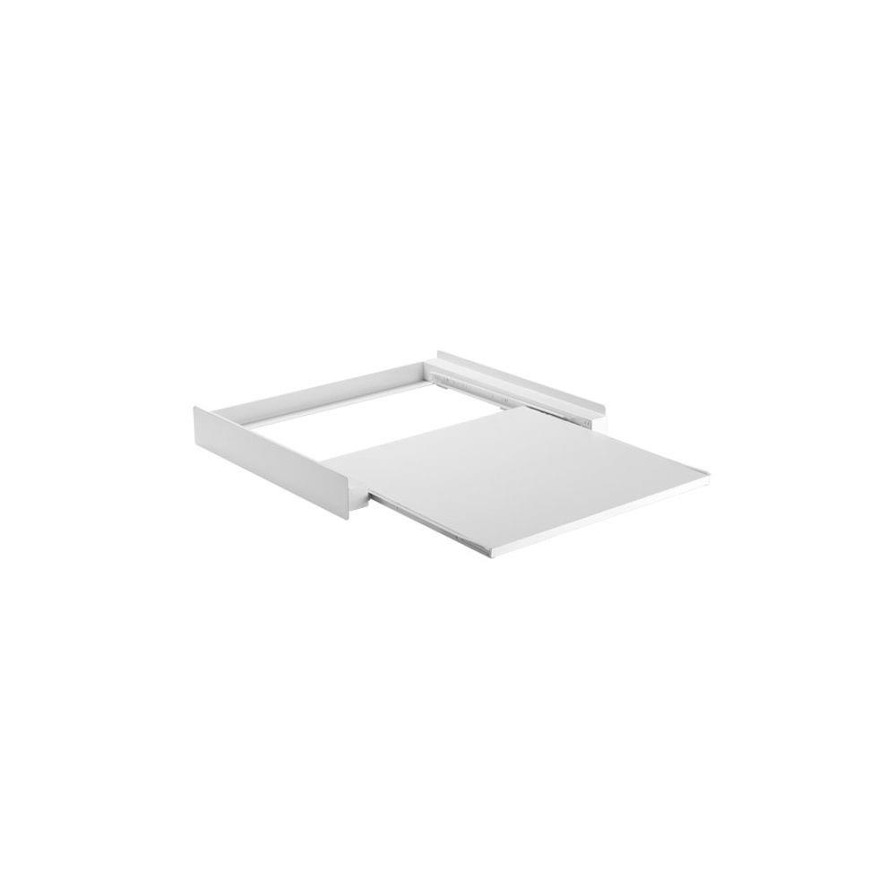 Metallo Ripiano legno bilaminato estraibile cm 48x50 h 2 Portata ripiano max kg 8 Cinghia di sicurezza m 6 inclusa Ideale per sovrapporre lavatrice/asciugatrice Dimensioni cm 55x60 h 5,5