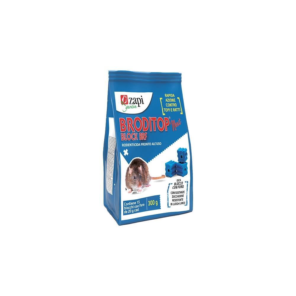 Prodotto di libera vendita a base di Brodifacoum Blocco estruso g 20 resistente umidita' Miscela a base di componenti alimentari Arricchita con zucchero e adescanti Adattaper ambienti interni ed intorno ad edifici Ideale per topi e ratti