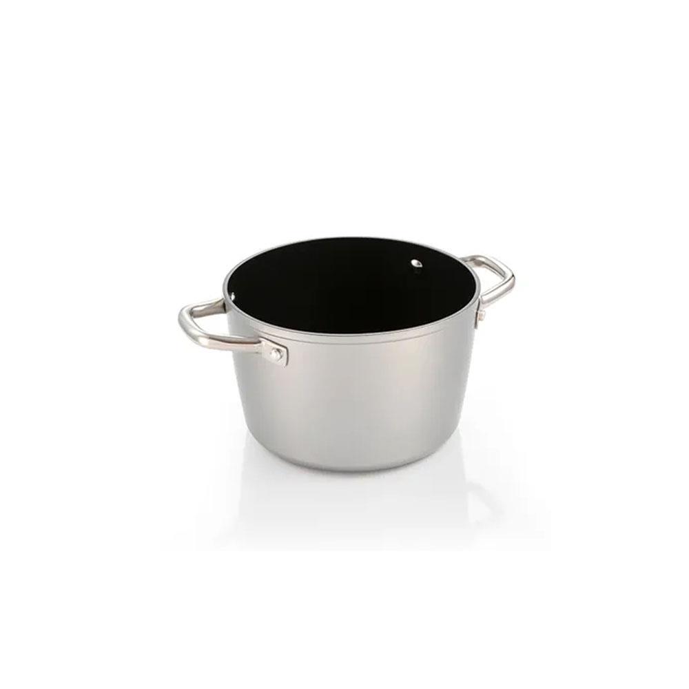 Alluminio - Spessore mm 3 Esterno alluminio verniciato Interno antiaderente nero Manici inox Adatta per induzione e tutte le fonti di calore Garanzia 5 anni