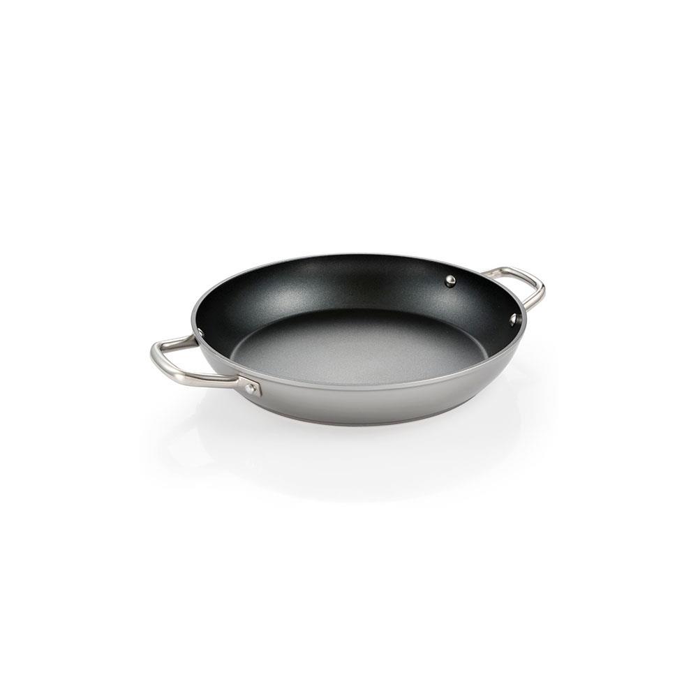 Alluminio - Spessore mm 3 Esterno alluminio verniciato Interno antiaderente nero Manici inox Adatta per induzione e tutte le fonti di calore Garanzia 5 anni