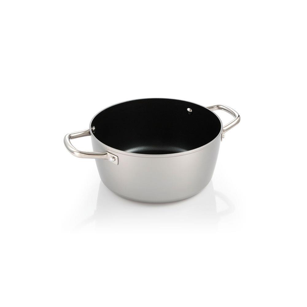 Alluminio - Spessore mm 3 Esterno alluminio verniciato Interno antiaderente nero Manici inox Adatta per induzione e tutte le fonti di calore Garanzia 5 anni