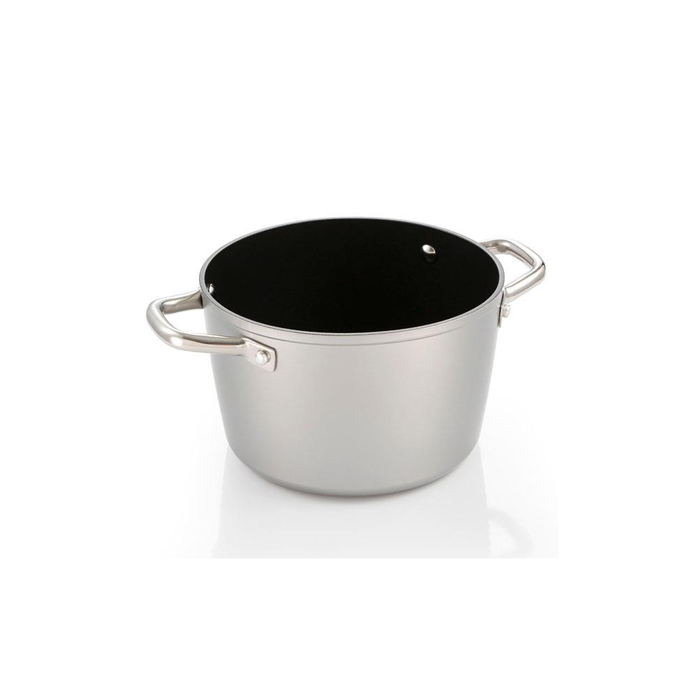 Alluminio - Spessore mm 3 Esterno alluminio verniciato Interno antiaderente nero Manici inox Adatta per induzione e tutte le fonti di calore Garanzia 5 anni