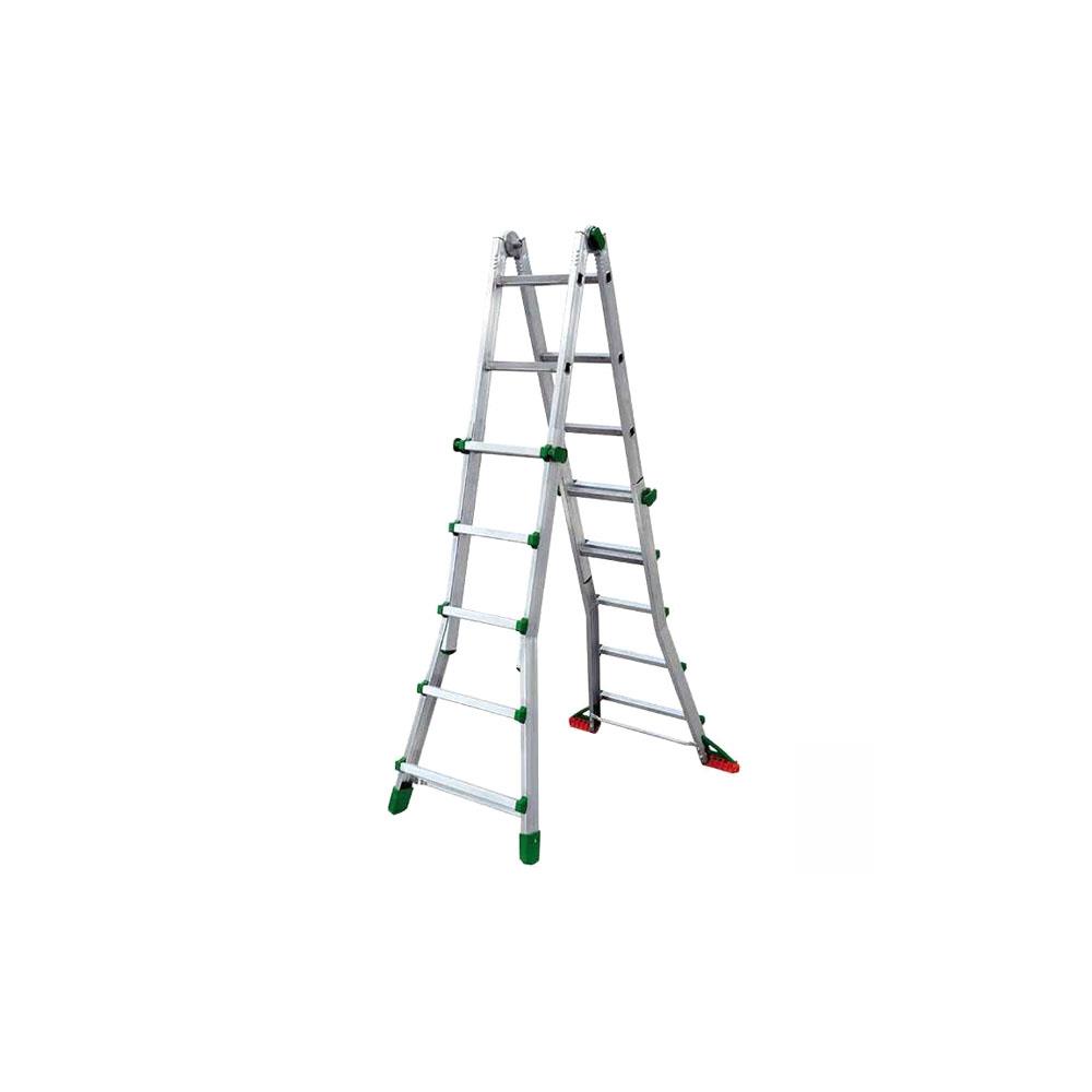 Struttura alluminio - Telescopica Cerniere automatiche con dispositivo sicurezza Gradini alluminio 4+4 - Altezza cm 120/400 Piedini stabilizzatrici Norme EN 131 - Portatamax kg 150