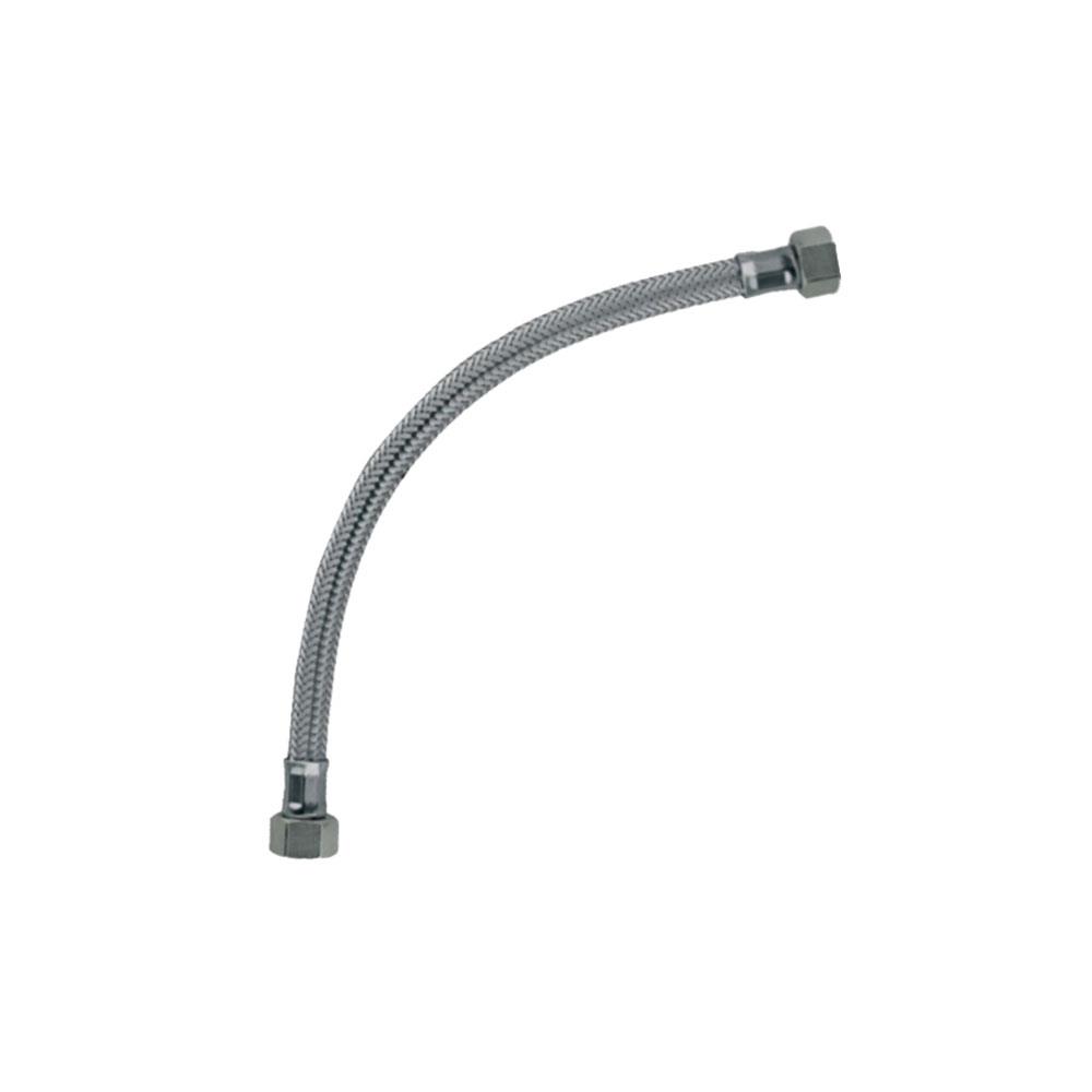 Interno gomma speciale mm 9,5 Rivestimento treccia acciaio inox AISI 304 8 Fili Raccordi ottone cromato con guarnizioni Temperatura esercizio max 90^Pressione esercizio max bar 10