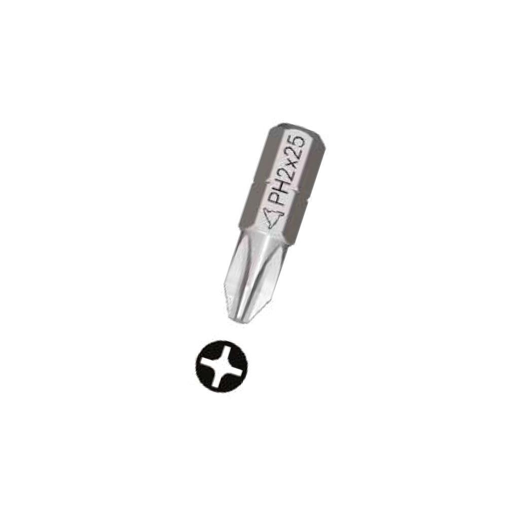 Inserto per viti croce Phillips Acciaio cromo vanadio temprato durezza 58/60 HRC Modello standard per avvitamento morbido/duro Attacco 1/4" - Lunghezza mm 25