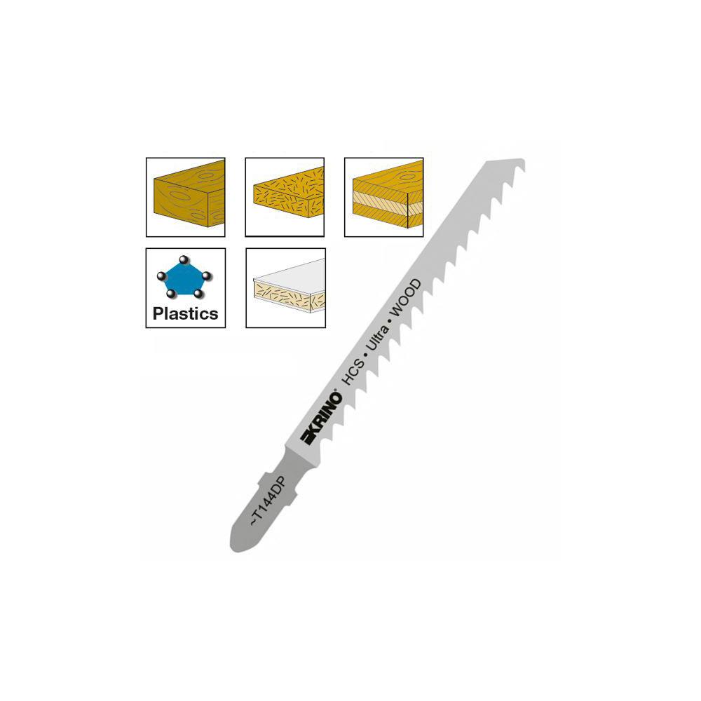 Lama seghetto alternativo Attacco tipo Bosch Acciaio HCS rettificato Lunghezza mm 100 - Passo denti mm 4,0 Utilizzo su: Legno, truciolare e multistrato < mm 50 Plastica lastre < mm 5 e profili< mm 30