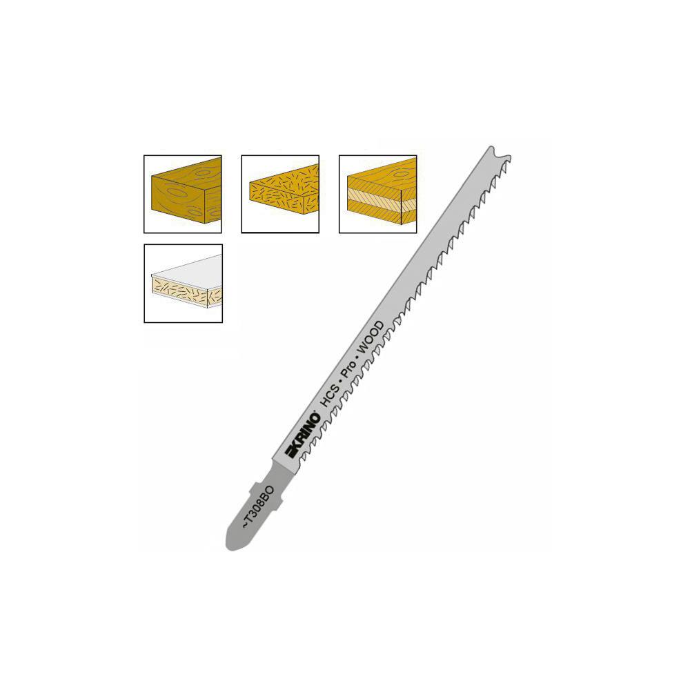 Lama seghetto alternativo tagli curvi Attacco tipo Bosch Acciaio HCS rettificato Lunghezza mm 116 - Passo denti mm 2,2 Utilizzo su: Legno, truciolare e multistrato < mm 65