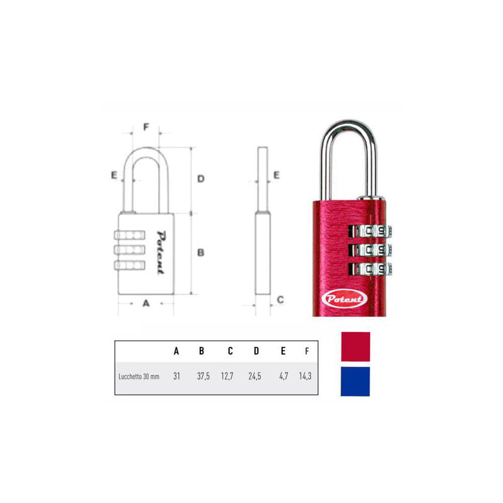 LUCCHETTO ALLUMINIO mm 30 COMBINAZ.ROS.9330 POTENT