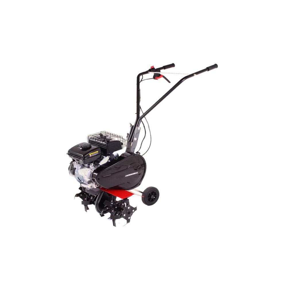 Motore 4T R100 OHV - Hp 2,0 - cc 98 - Peso kg 35 4 frese diametro cm 24 - Larghezza lavoro cm 20/46Cambio monomarcia - Avviamento autoavvolgente Innesto/disinnesto fresa su impugnatura Trasmissione a catena - Ruotino trasferimento