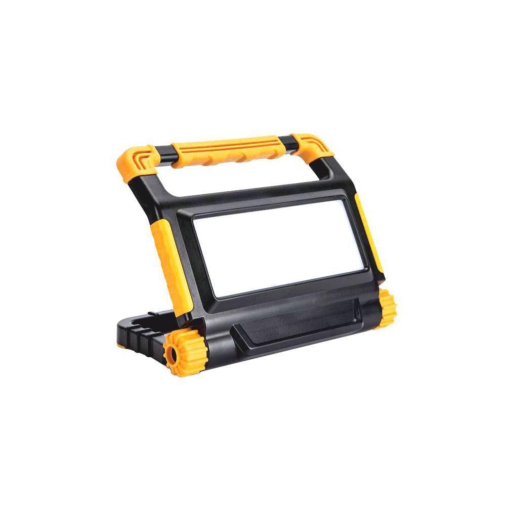 Modello portatile con supporto da appoggio Vetro temprato rettangolare Led watt 150 lm 13000 Luce fredda 4000K Fascio luce 120^ - Cavoalimentazione m 3 Dimensioni mm 400x260 h 462 Protezione IP44 Colore nero/giallo