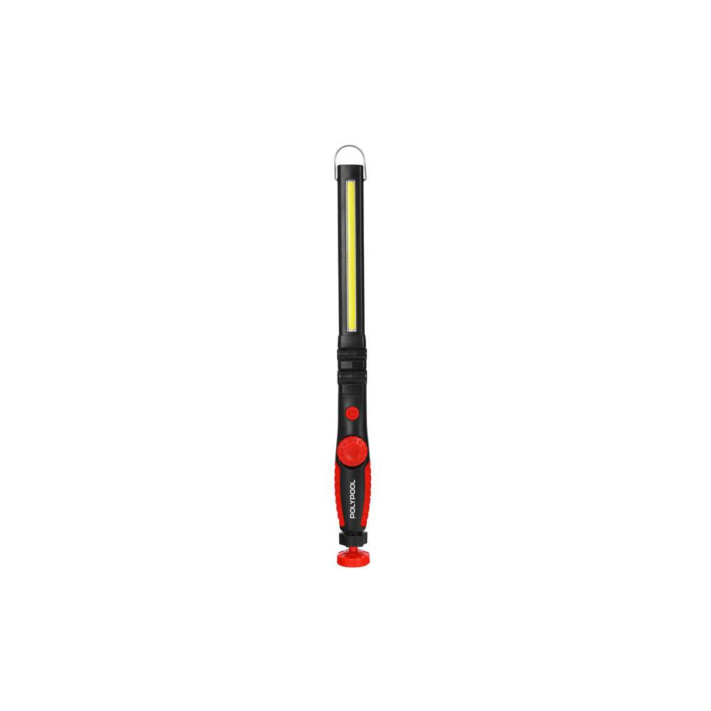 Corpo ABS 1 led COB watt 5 lumen 450 Torcia superiore 1 led watt 3 lumen 70 Fascio luce ANSI m 23 - Torcia superiore m 11 Grado di protezione IP20 Funzioni: regolazione intensita' Supporto magnetico Dotazionecavo USB Alimentazione 1 batteria Li 2,0 Ah ricaricabile Dimensioni mm 30x40x410