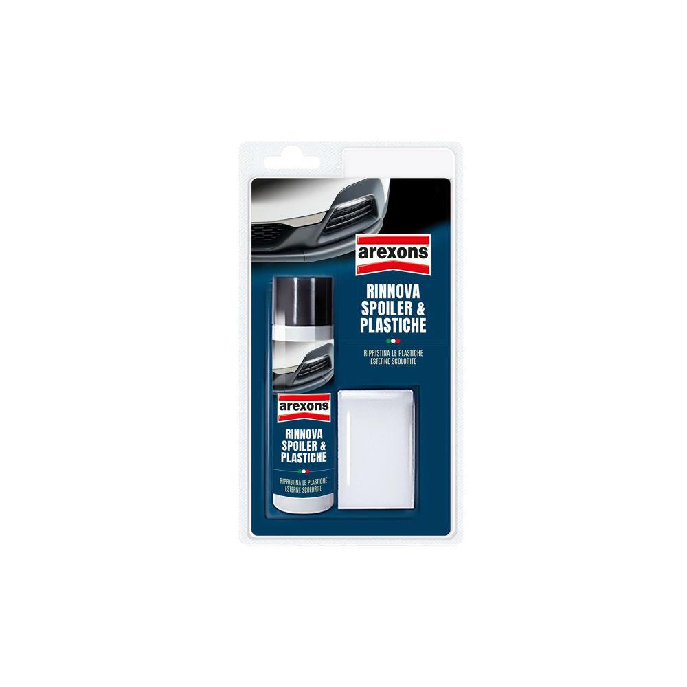 Rinnova parti plastiche carrozzeria Elimina macchie causate da agenti atmosferici Forma film protettivo Dotazione spugna e guanto Adatto paraurti, fasce, mascherine, ecc