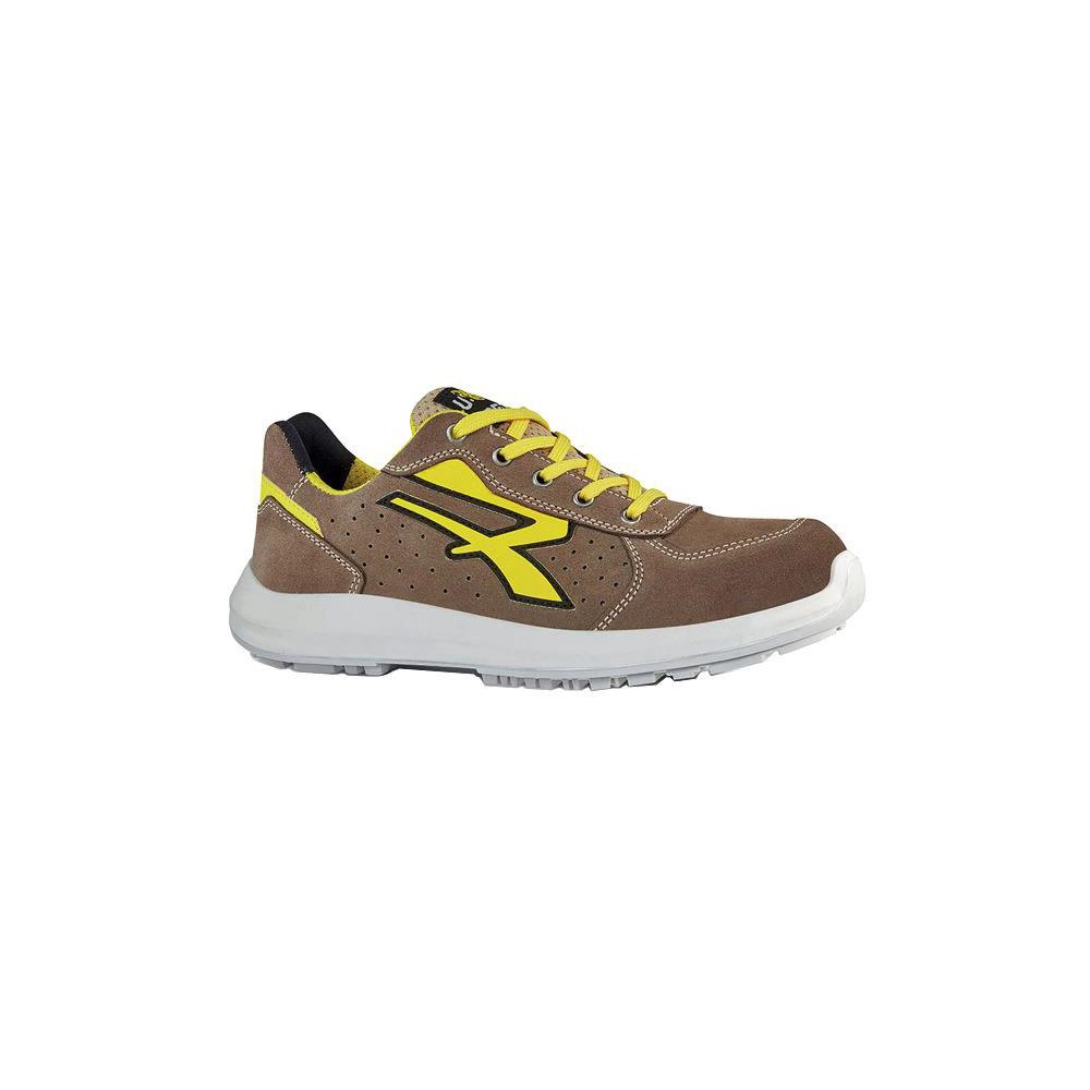 Tomaia pelle scamosciata Fodera traspirante Wingtex Suola PU compatto - Intersuola PU espanso Puntale Airtoe alluminio con membrana traspirante Soletta U-Power original traspirante, anatomica e antibatterica Antistatica, antiolio e antiscivolo Protezione classe S1P - Colore marrone/giallo