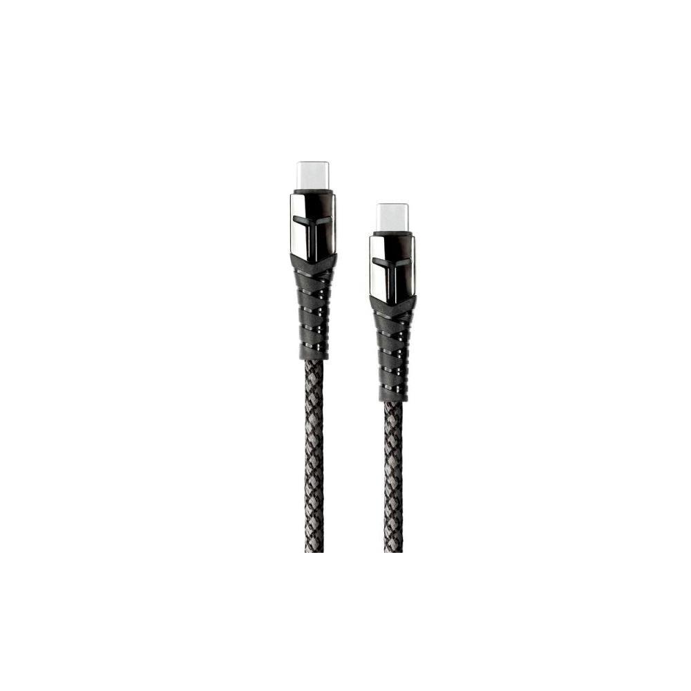 Cavo ricarica e trasferimento dati Entrata USB-C Uscita Type C Potenza trasmissione watt 60 Lunghezza cm 220 Rivestimento rinforzatoLuce LED funzionamento Terminali alluminio Colore nero/grigio
