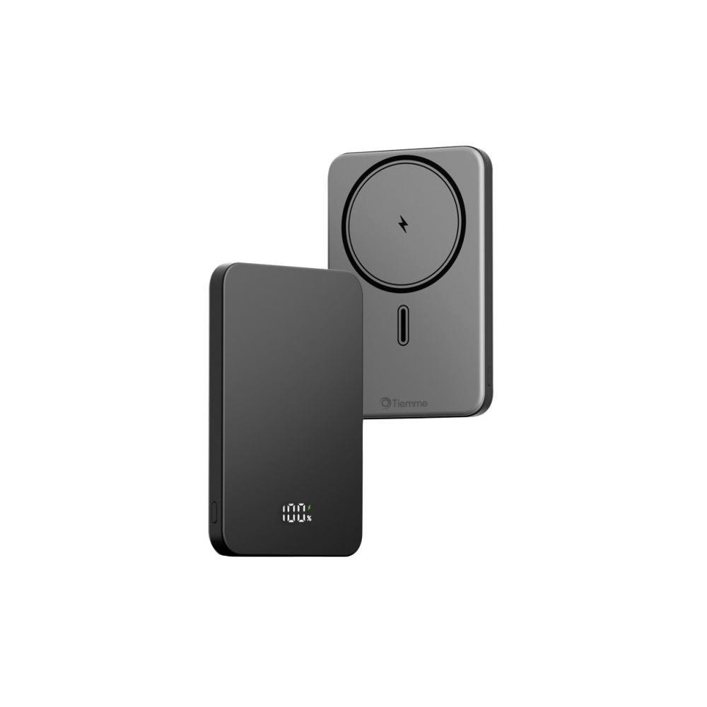 Batteria Li Ah 5 Entrata Type C Uscita Type C watt 22,5 e wireless watt 15 Display LED ricarica residua Cavo ricarica entrata USB-A uscita Type C Dimensioni cm 10,5x6,9 spessore 0,95