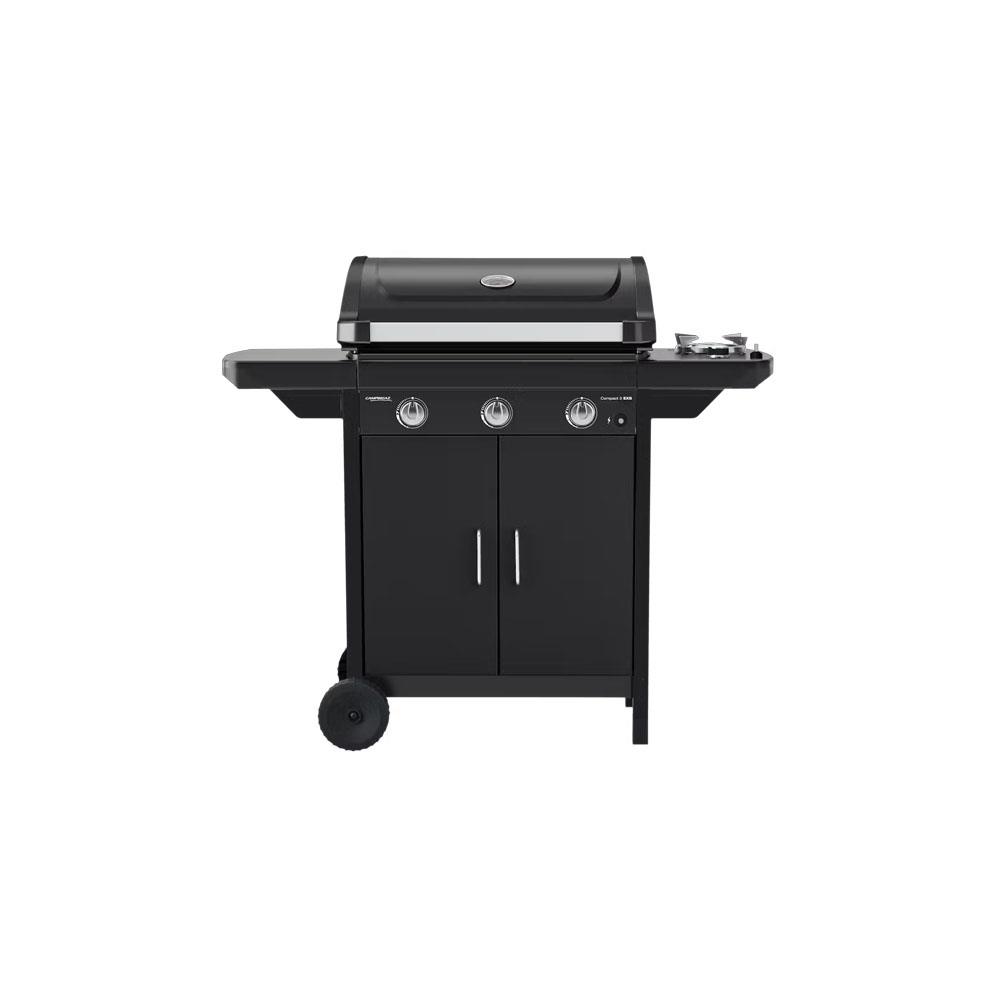 Barbecue gas metano/GPL - Kit conversione incluso3 bruciatori acciaio alluminato Griglie ghisa smaltata cm 61x35 Coperchio con termometro Griglia articolata cm 64x17 Fornello laterale e ripiano laterale pieghevole Frontale mobiletto con ante Peso kg 34 -2 ruote fisse