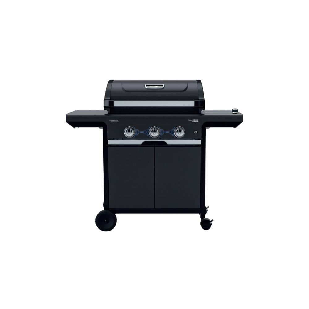 Barbecue gas metano/GPL - Kit conversione incluso3 bruciatori acciaio inox Griglie ghisa smaltata cm 63x40 Coperchio con termometro Griglia articolata cm 66x18 Fornello laterale e ripiano laterale pieghevole Frontale mobiletto con ante Sistema Culinary Modulars e pulizia InstaClean Peso kg 51- 2 ruote fisse e 2 ruote piroettanti