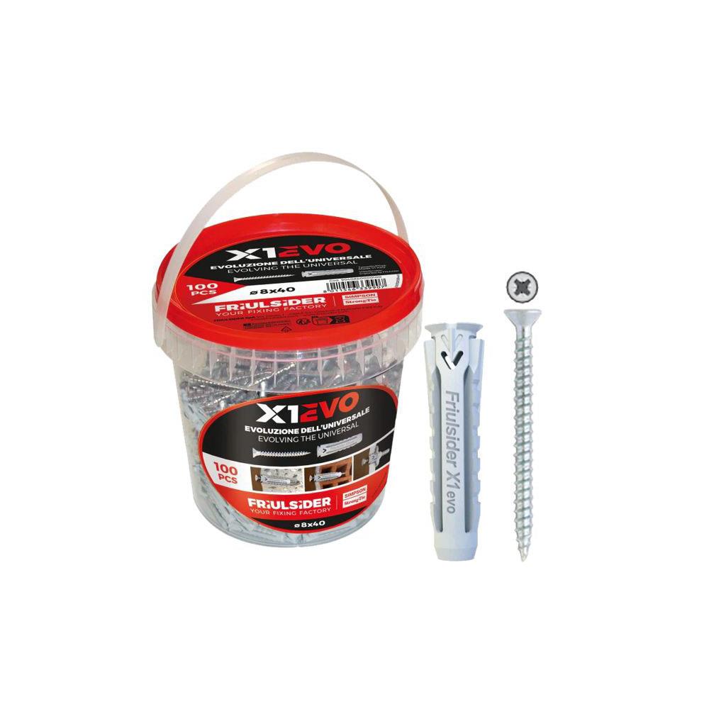 Corpo nylon elevata qualita' Collare sottile e svasato Vite truciolare TSP-PZ acciaio zincato Fissaggi leggeri Idoneo su cartongesso, mattone pieno e forato Barattolo con tappo pressione e maniglia trasporto