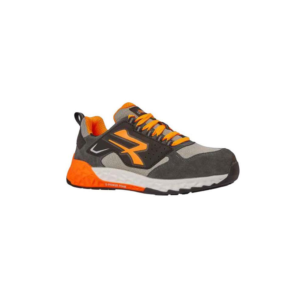 Tomaia U-KNIT elasticizzata lavorazione laser e pelle scamosciata Fodera traspirante Wingtex Suolagomma Intersuola Super Critical Technology Puntale NanoFiber fibra di vetro Soletta U-Power original traspirante, anatomica e antibatterica Antistatica, antiolio e antiscivolo Protezione classe S1P - Colore grigio/arancione