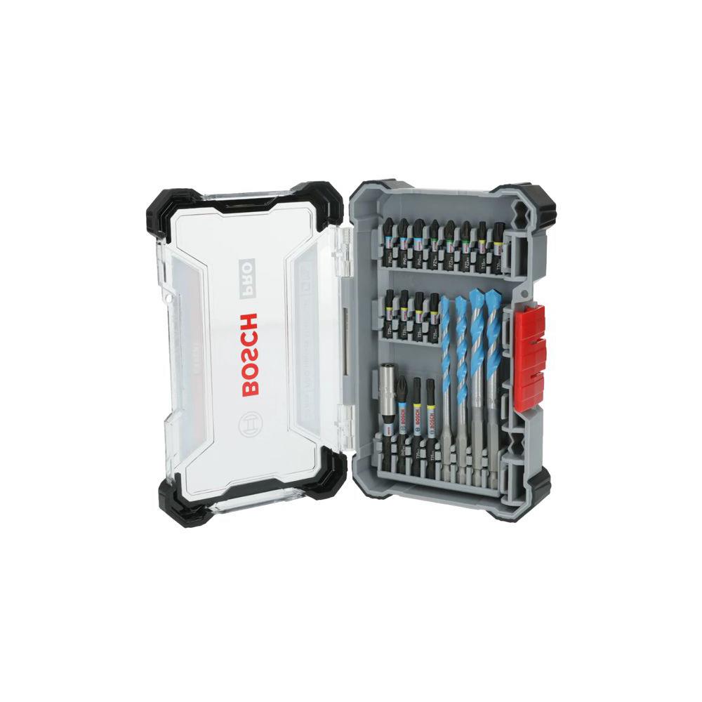 Confezione valigetta plastica con finestrella Inserti mm 25: 3 PH, 3 PZ, 6 T Inserti mm 55: 1 PH, 2T 4 punte multi-construction 1/4" mm 5-6-8-8 Portainserti magnetico Dimensioni mm 107x200 h 41
