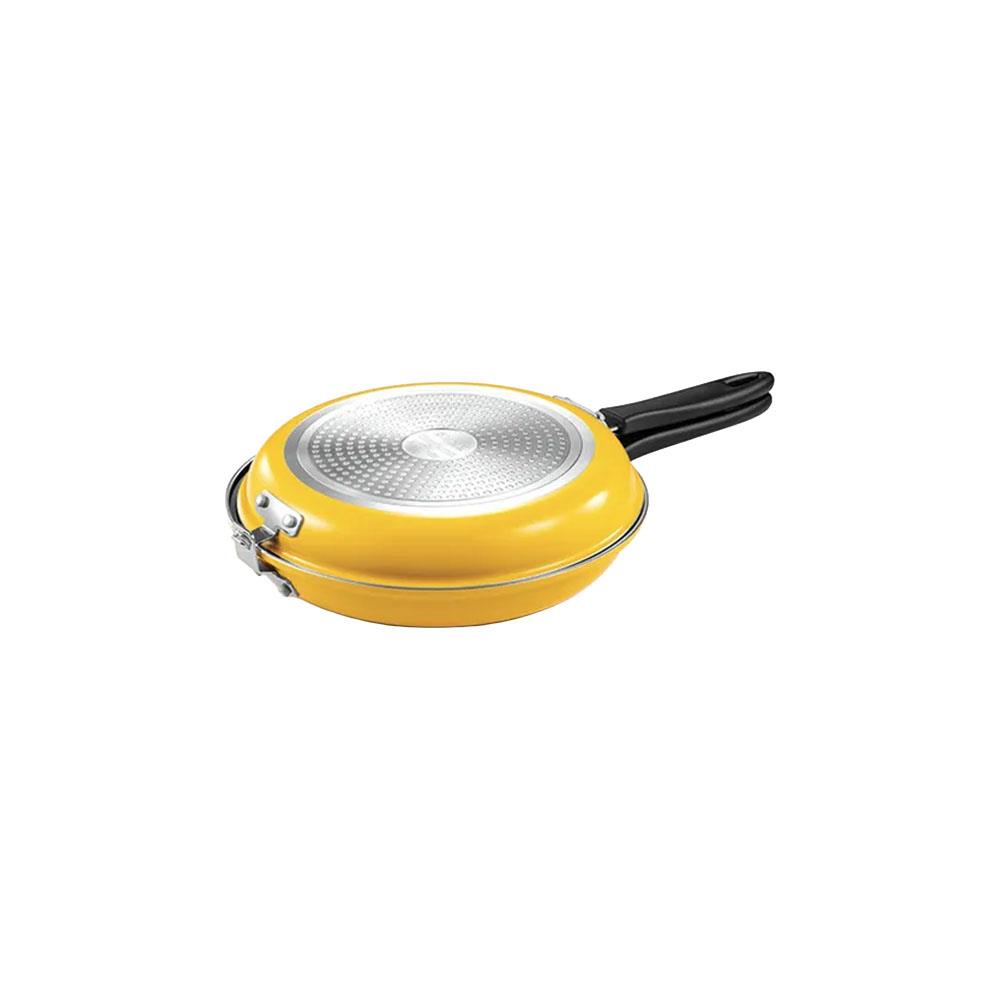 Alluminio - Spessore mm 2,5 Esterno colore gialloInterno antiaderente nero Manici bachelite rivettati Bordo antigoccia Sistema chiusura ad incastro Adatta per induzione e tutte le fonti di calore