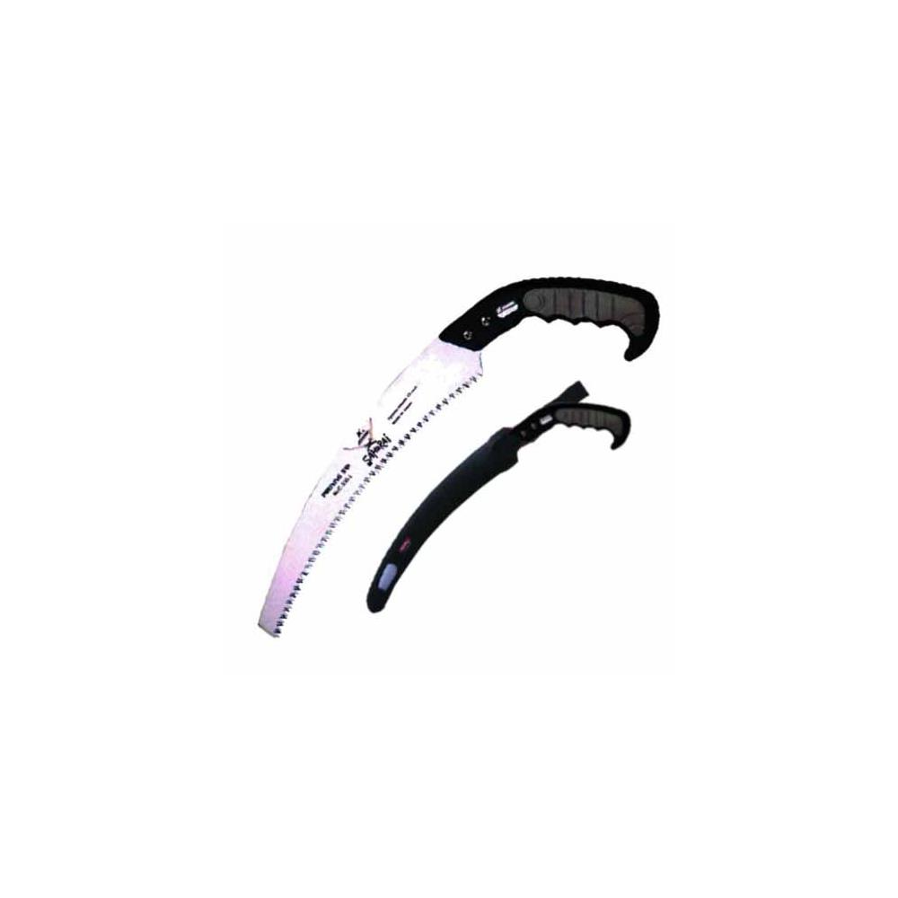 Lama curva dentatura differenziata Denti sporgenti Manico fisso ergonomico a pistola Dotazione fodero con passante cintura Adatto per lavori di potatura pesanti