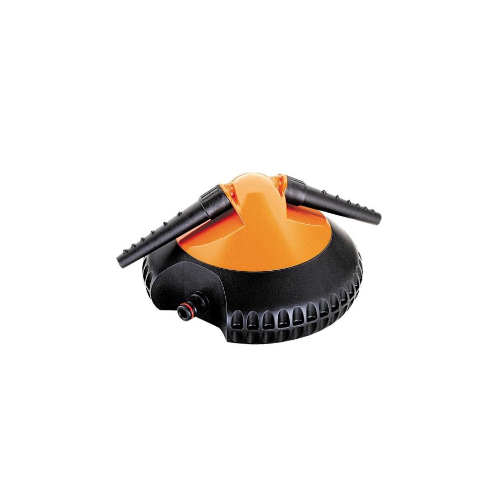 Irrigatore statico rotante a due braccia Ugelli orientabili con getti sfalsati a ventaglio Effetto pioggia leggera Struttura e base ABS di facile spostamento Copertura area circolare diametro m 15