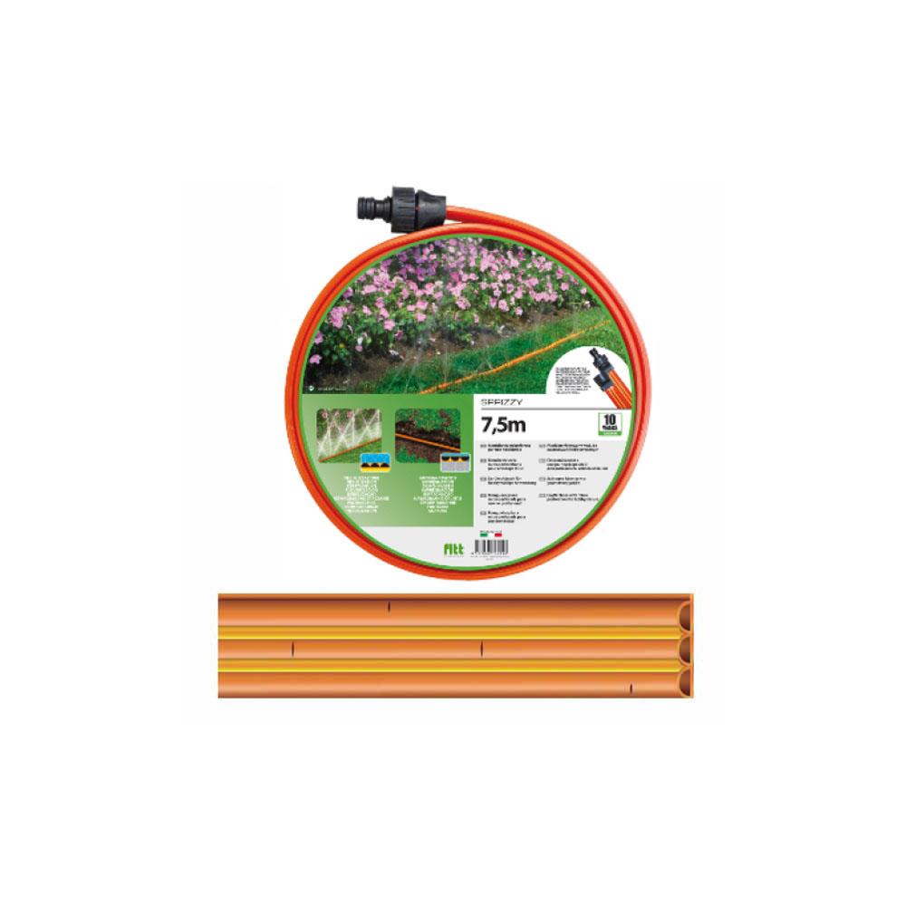 Tubo microforato arancione a tre vie. Adatto per irrigazione in orti e giardini, per un uso hobbystico. Garantisce irrigazione a pioggia uniforme nebulizzata e puo' essere utilizzato per irrorazione o per impregnamento. Pressione di utilizzo consigliata: max bar 4