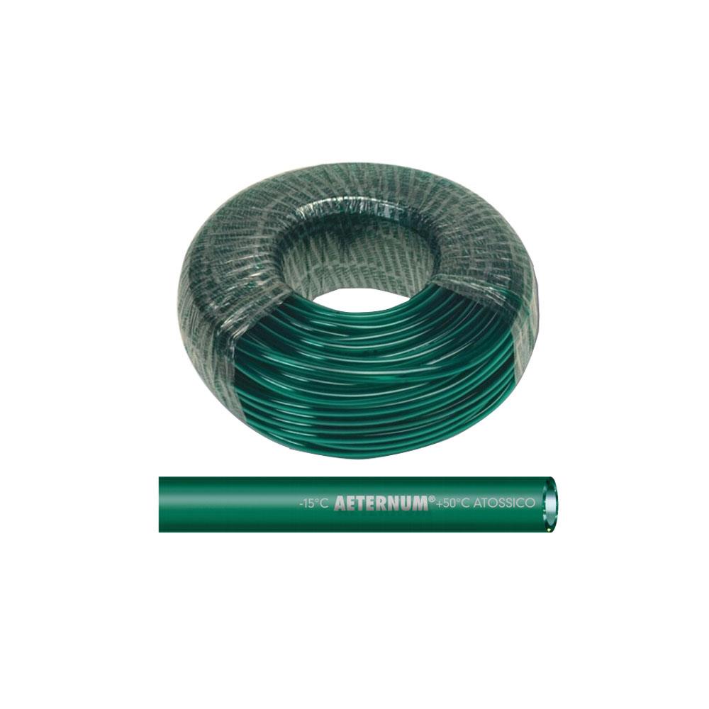 Tubo monostrato di colore verde smeraldo trasparente atossico molto flessibile conforme agli obblighi imposti dal Regolamento (EC) 1907/2006 (REACh).Conforme al Regolamento Europeo 10/2011 relativa al passaggio di liquidi alimentari per i simulantiA-B-C. Superficie liscia brillante. Temperatura di utilizzo -20^ + 60^