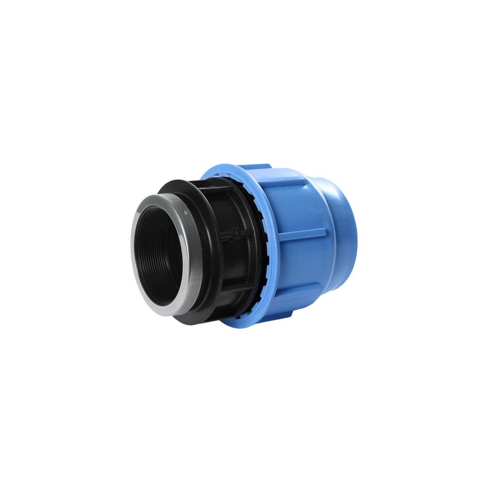 Corpo e ghiera polipropilene Guarnizione NBR Fissaggio a compressione - Filetto femmina Conforme per acqua potabile e fluidi alimentari Pressione maxPN 16