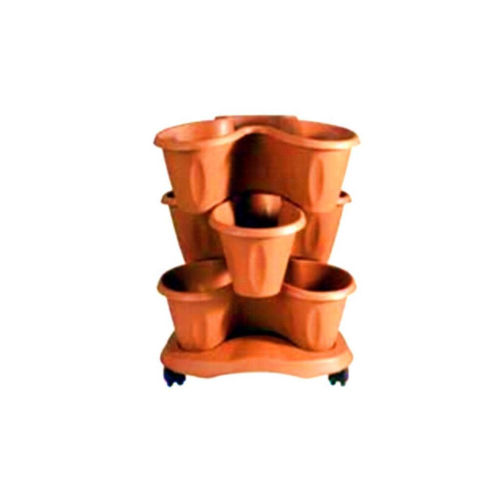 Plastica stampaggio ad iniezione colore coccio Composizione: Pz 3 vasi forma trifoglio cm 40 h 16 Pz 1 sottovaso con ruote Adatto per realizzazione piccolo giardino Ideale per terrazzi e balconi