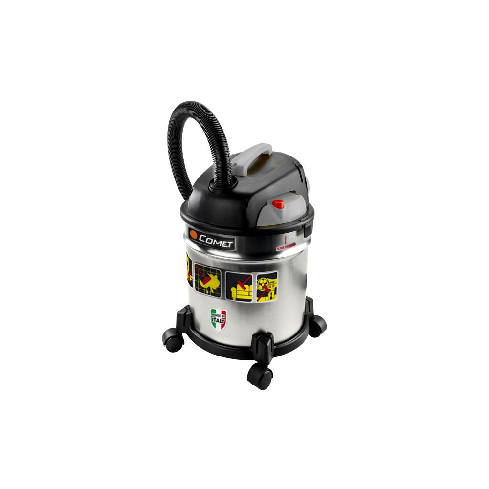 Watt 1200 - Potenza aspirazione > 18 kPa Serbatoio acciaio l 20 - Peso Kg 5,0 Attacco mm 35 - Tubo plastica m 1,5 Motore silenziato - Scuotifiltro Dotazione prefiltro e filtro spugna Cavo alimentazione m 4,0 Vano accessori integrato - Funzione soffiante Adatto per aspirazione solidi e liquidi