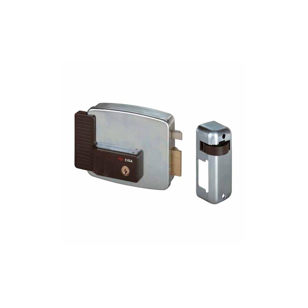 Elettroserratura V 12 porte ferro da applicare Zincata - Scrocco autobloccante Tettuccio protettivo- Sottobocchetta Viti fissaggio - Cilindro 02139-00-0 Misure mm 128x106