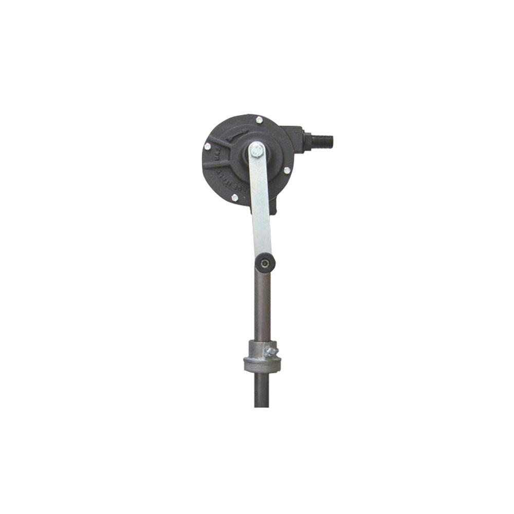 Pompa manuale rotativa - Corpo acciaio Portata l/min 40 - Tubo pescaggio telescopico Attacco universale per fusti da l 50/210 Adatta per carburanti elubrificanti a bassa e media viscosita`