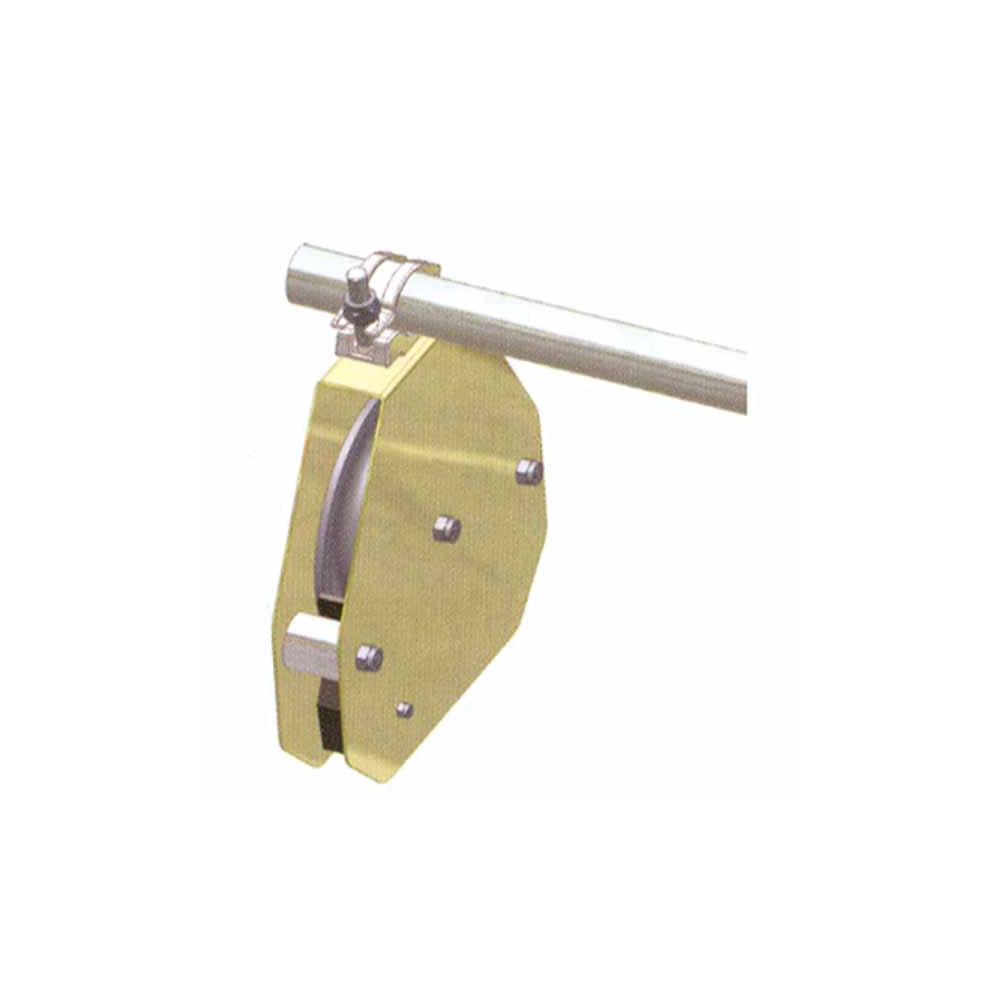 Sistema frenatura brevettato portata kg 50 Ruota su cuscinetti Morsetto fissaggio ponteggi Adatta per funi diametro mm 18/20 Dimensioni mm 300 h 350 - Peso kg 6