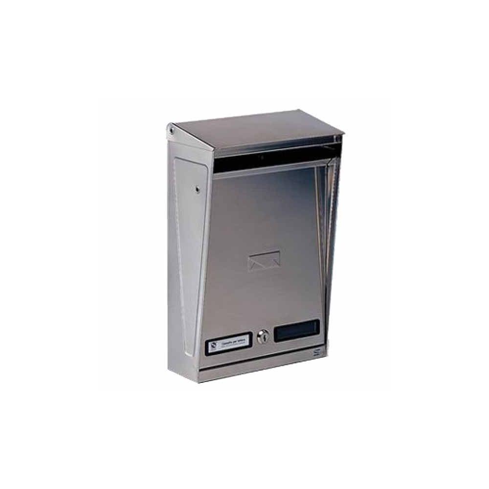 Cassetta postale per esterno serie S/INOX Acciaioinox satinato lucido Adatta per riviste - Tetto parapioggia apribile Lato frontale per imbucare e ritirare Dimensioni cm 25x9/14 h 39