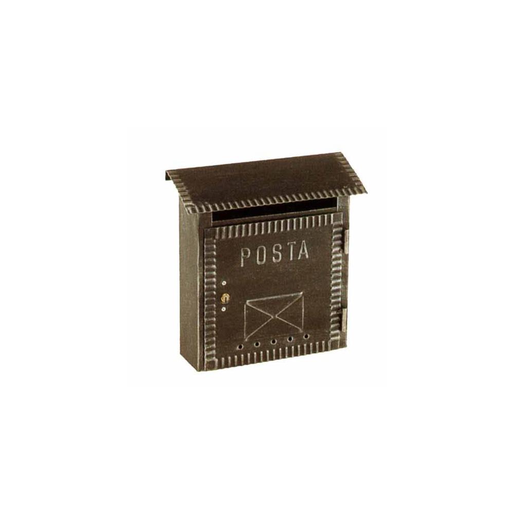 Cassetta postale per esterni Ferro battuto colorenero Tetto parapioggia fisso - Stile rustico Latofrontale per imbucare e ritirare Dimensioni cm 23x8 h 27