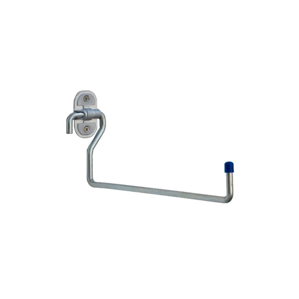Mensola multiuso salvaspazio gancio L Acciaio tondo pieno mm 9 - Ribaltabile Tappo finale azzurro Piastra supporto stampata e nervata Indicata per bobine carta