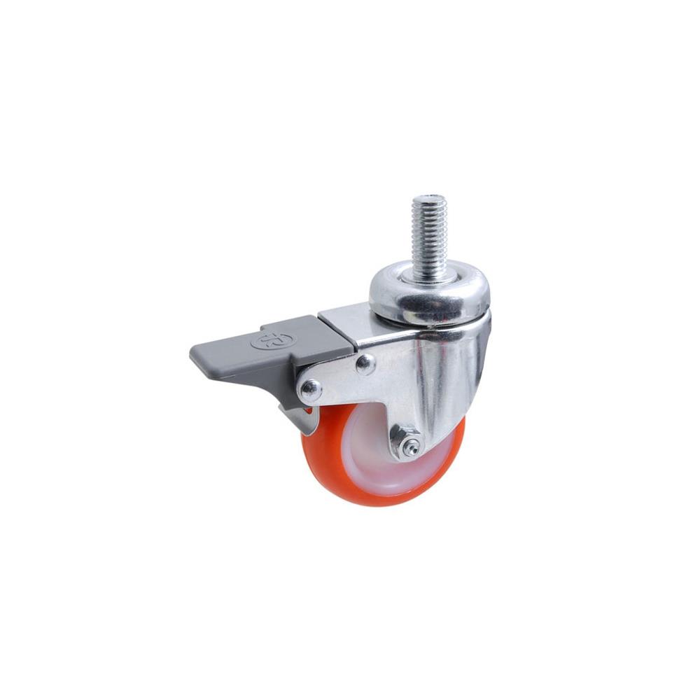 Ruota poliuretano iniettato colore rosso Nucleo poliammide 6 colore bianco Boccola - Perno MA 10/12- Freno stazionamento Adatta in collettivita' e ristorazione d.40 h 61 kg 40 d.50 h 67 kg 55 d.60h 83 kg 70