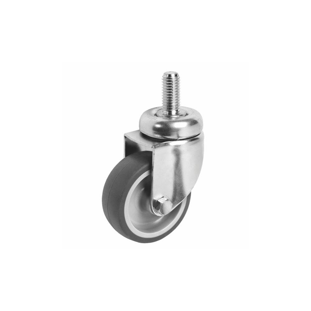 Ruota gomma termoplastica - Nucleo polipropilene Perno filettato MA 8/12 d.40 h 59 perno MA 8 kg30 d.50 h 66 perno MA 8 kg 40 d.60 h 83 perno MA12 kg 60